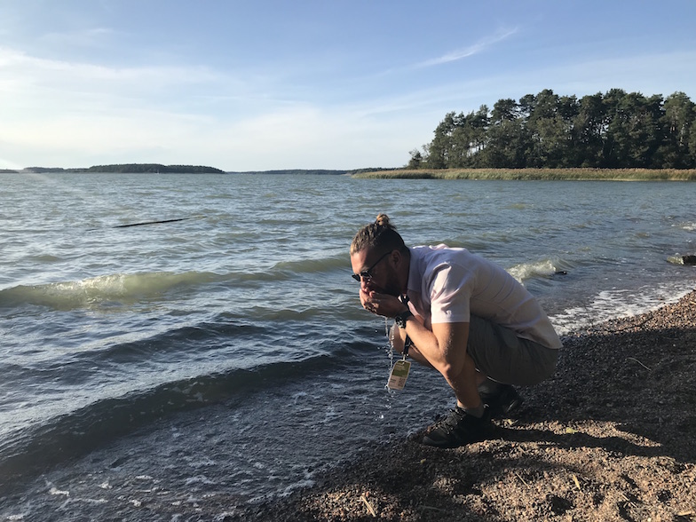 August 2019: Matt J tests the salinity of the Baltic Sea near Turku, Finland after ESEB 2019.